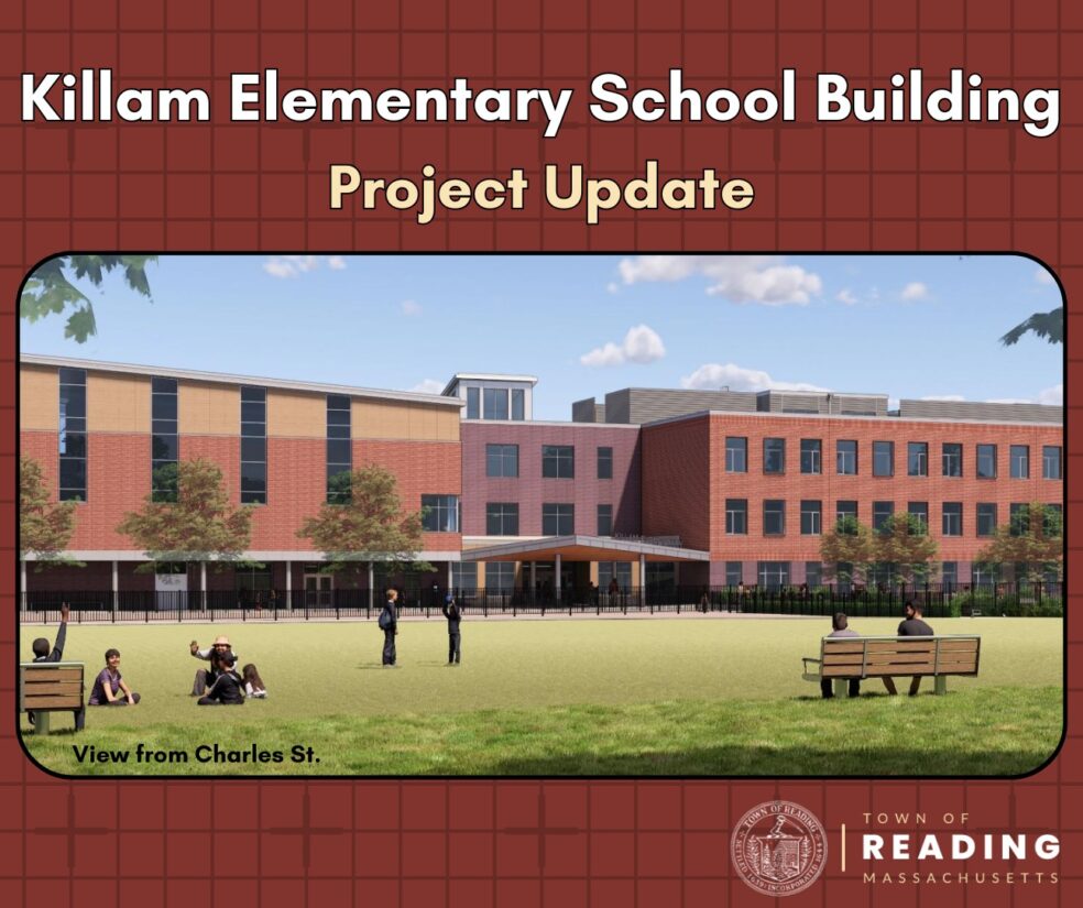 Join the Killam School Building Committee for a community meeting on Wednesday, October 23rd at 7:00pm at the Reading Public Library. The Killam designers will present on the site and community use.